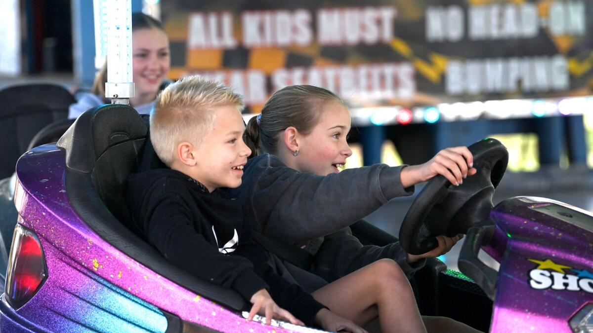 Dodge ’em: Rhys, 7, and Harmony Dowell, 9.