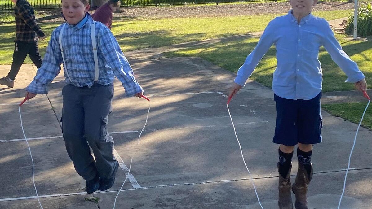 William Reid and Oliver Dellwo from Mayrung try their hand at jumping rope.
