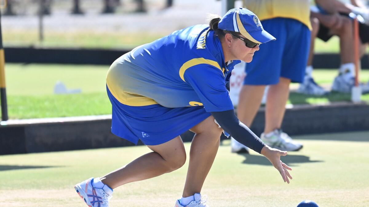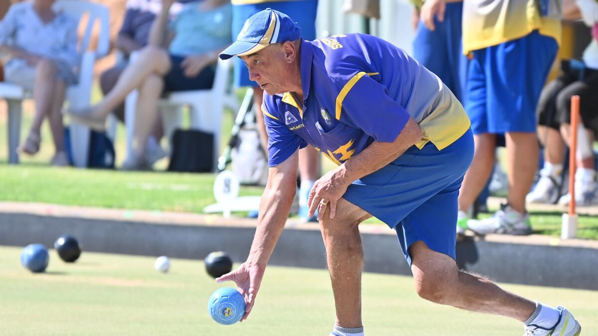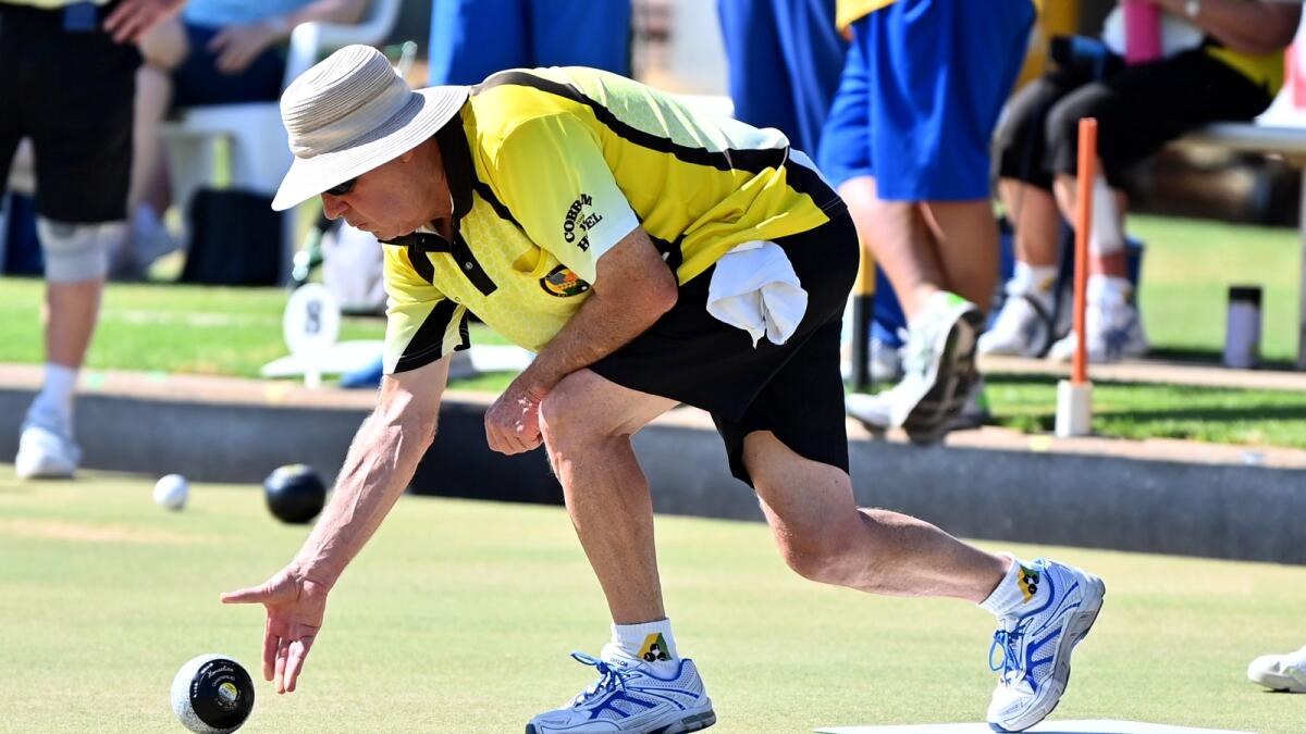 Rolling to victory: Cobram's Keith Faulkner lets loose his ball, aiming for the winning move.
