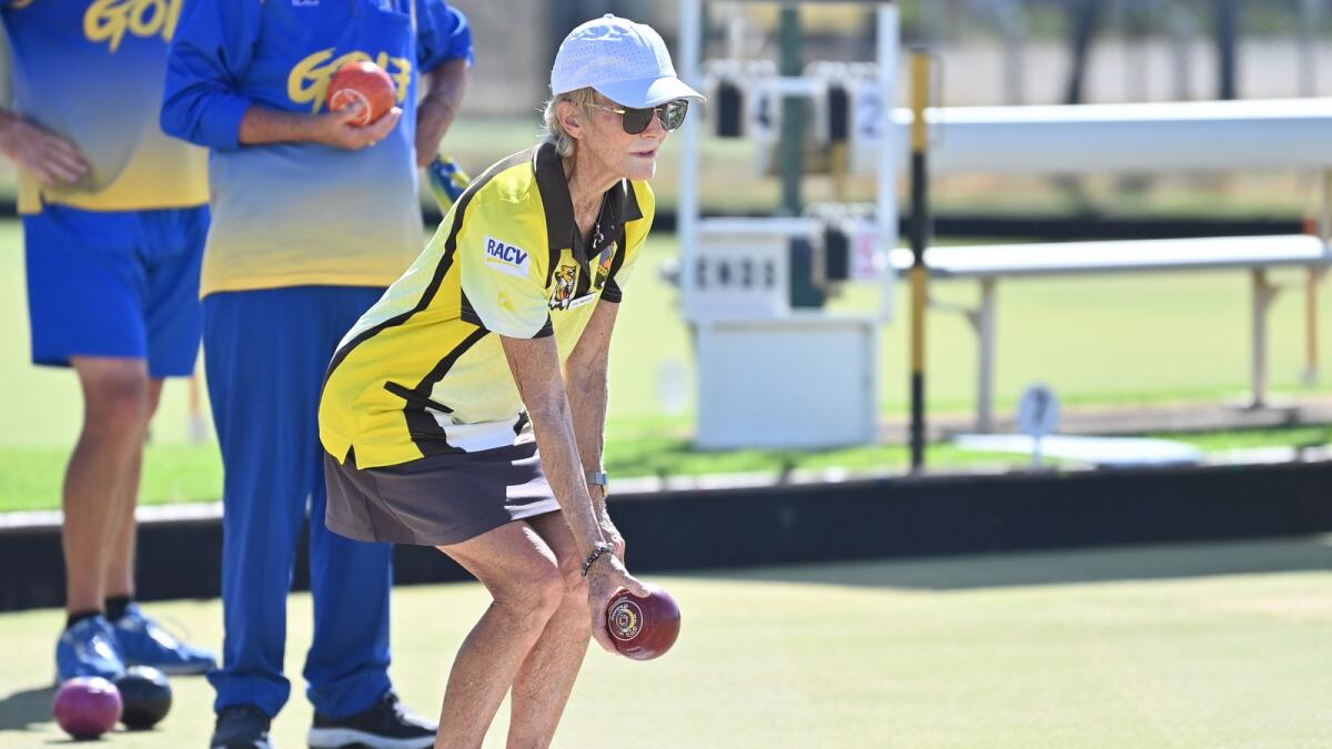 Lining it up: Cobram's Joy Mynard plots her move carefully.