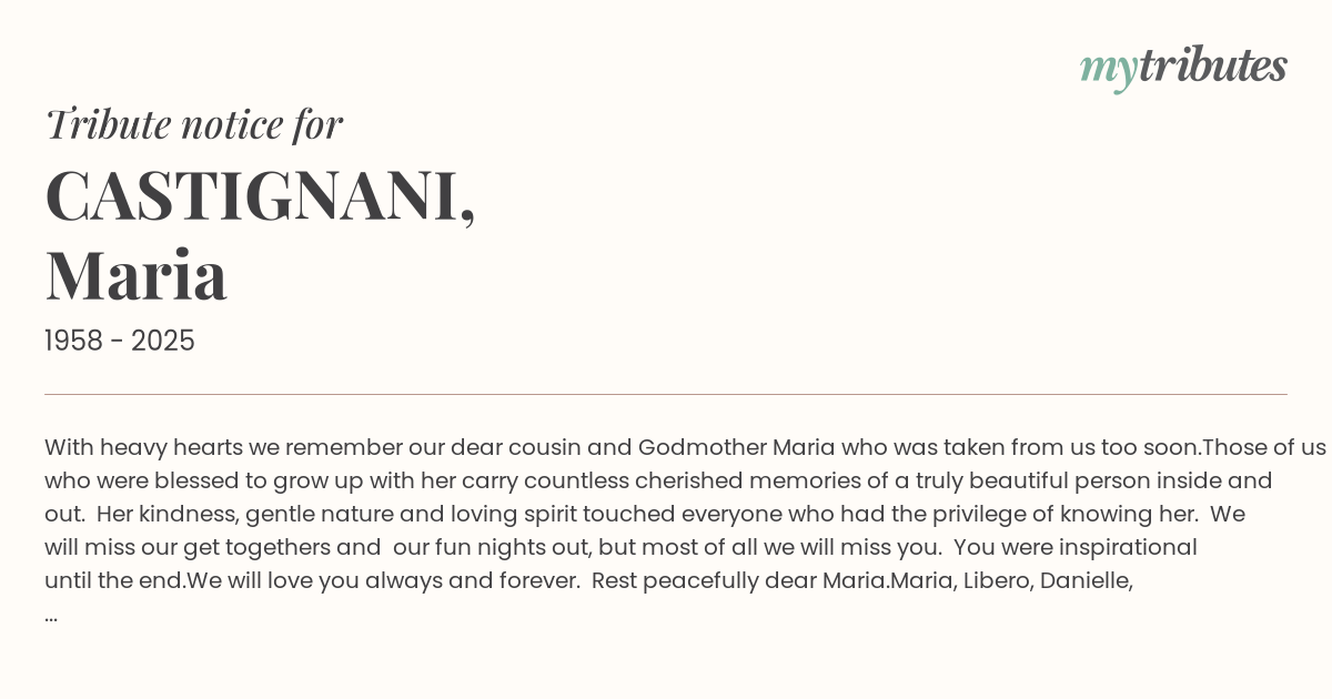 12°CWith heavy hearts we remember our dear cousin and Godmother Maria who was taken from us too soon.