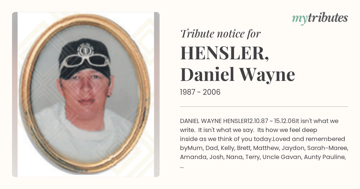Mum, Dad, Kelly, Brett, Matthew, Jaydon, Sarah-Maree, Amanda, Josh, Nana, Terry, Uncle Gavan, Aunty Pauline, Jayde, Carter, Phillip, Kayleb, Spencer
