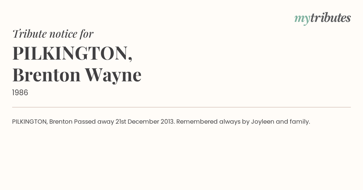 12°CPILKINGTON, Brenton