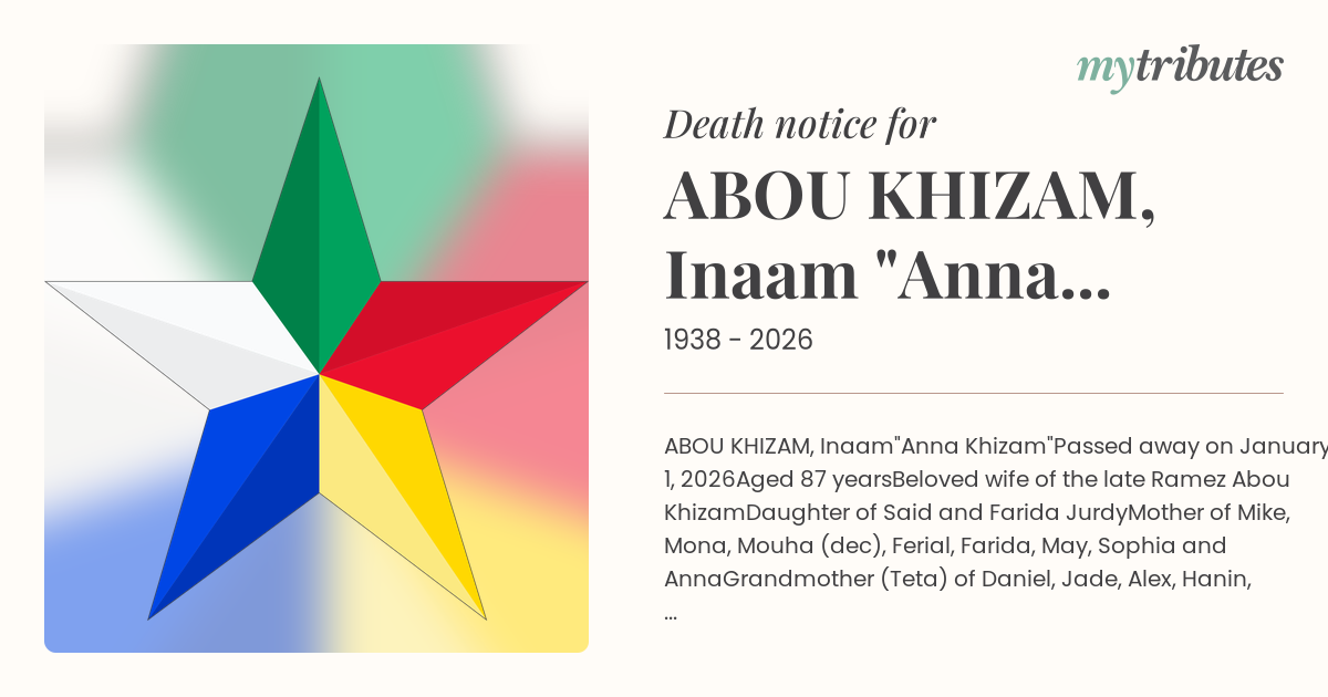 Beloved wife of the late Ramez Abou Khizam