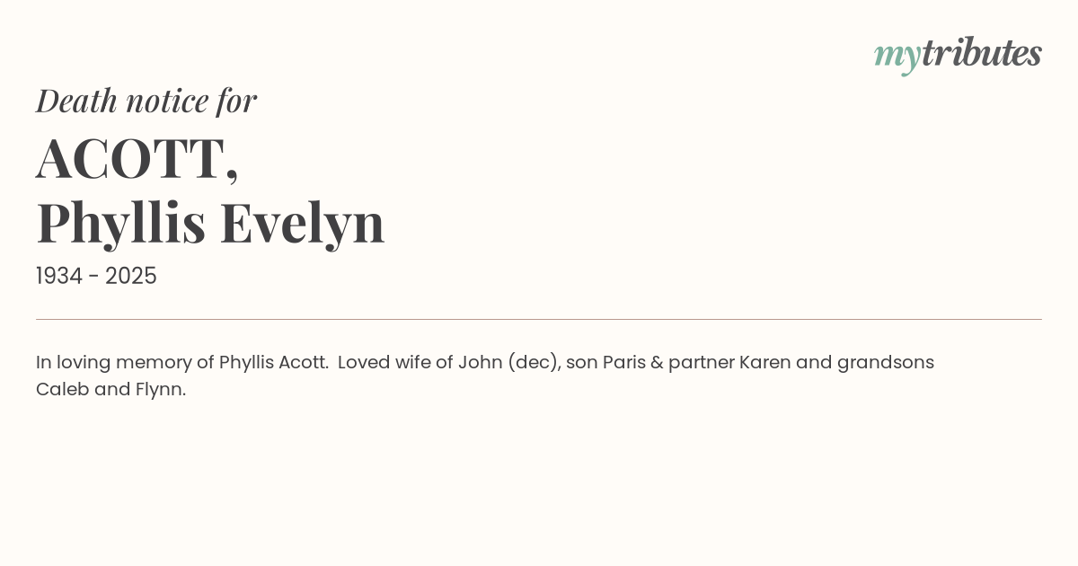 12°CIn loving memory of Phyllis Acott.