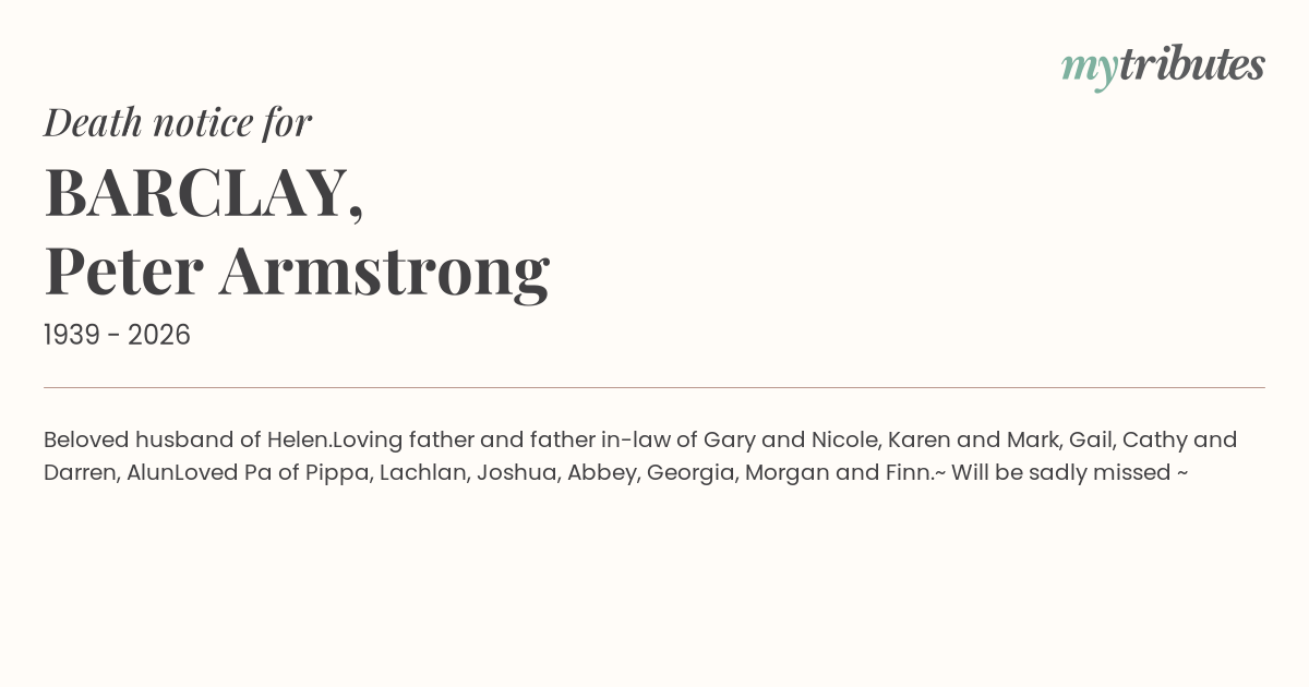 Loved Pa of Pippa, Lachlan, Joshua, Abbey, Georgia, Morgan and Finn.