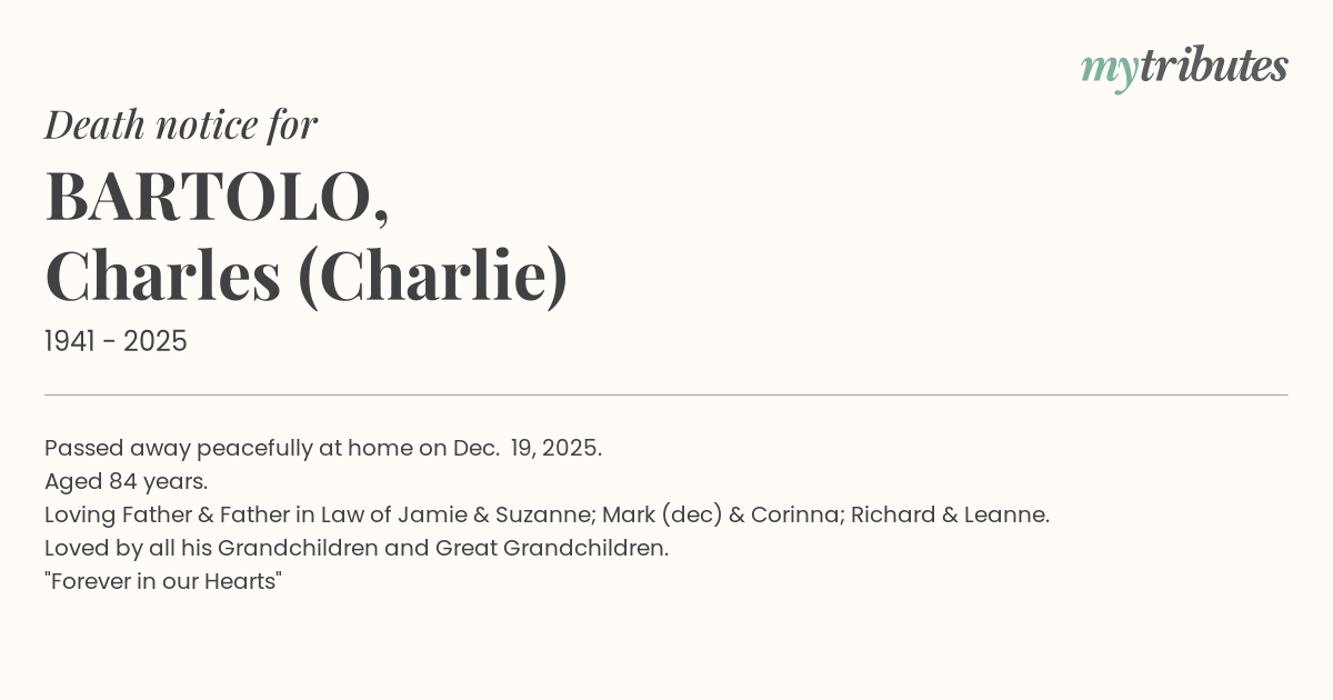 12°CPassed away peacefully at home on Dec. 19, 2025.