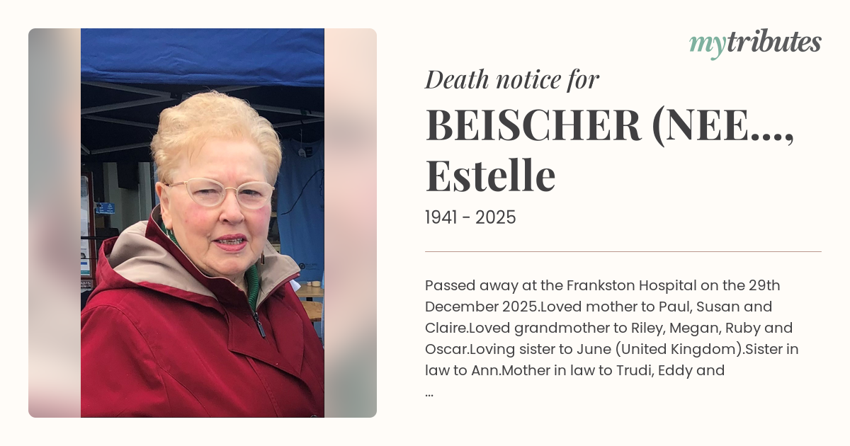 12°CPassed away at the Frankston Hospital on the 29th December 2025.