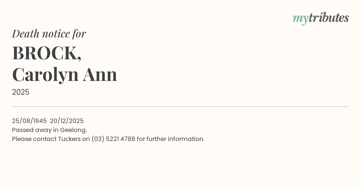 Funeral by : Tuckers Funeral & Bereavement Service Pty Ltd - Geelong West