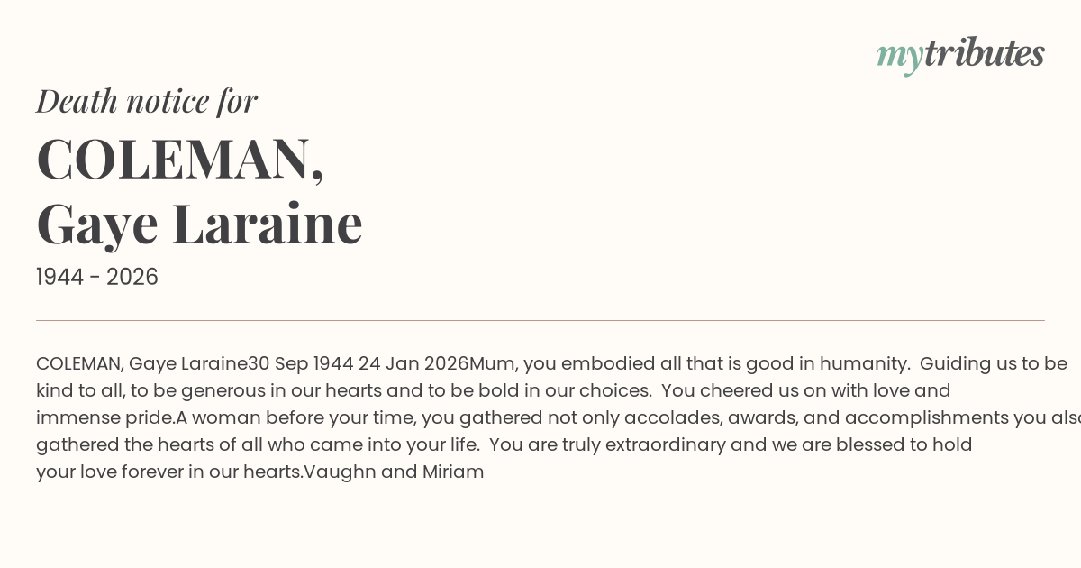 12°CCOLEMAN, Gaye Laraine