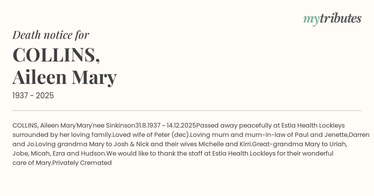the staff at Estia Health Lockleys for their wonderful care of Mary.