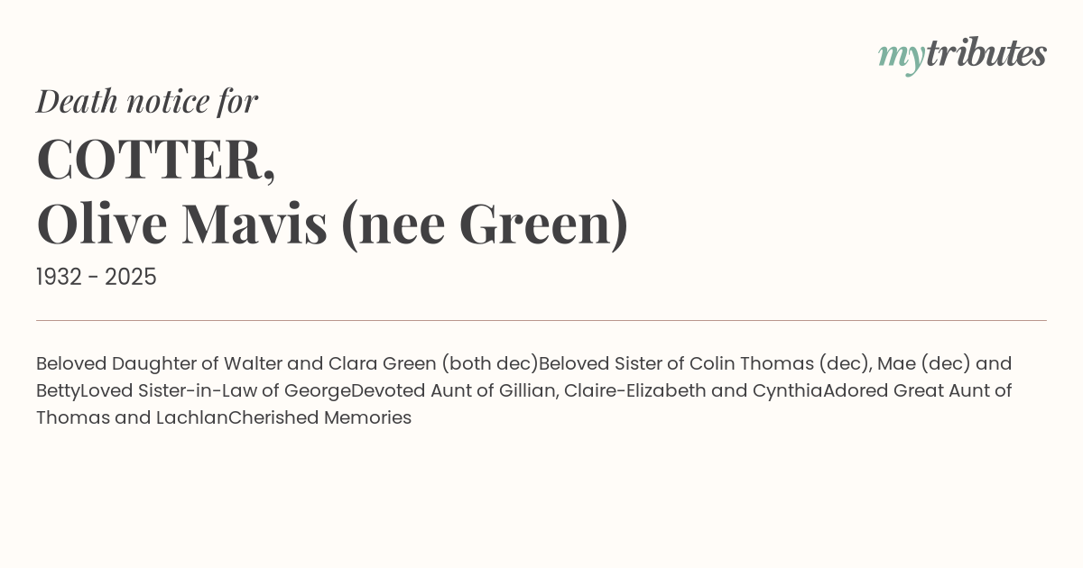 Adored Great Aunt of Thomas and Lachlan