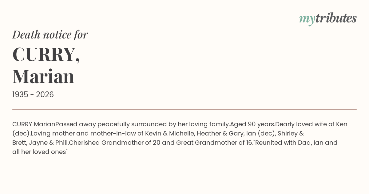 Cherished Grandmother of 20 and Great Grandmother of 16.