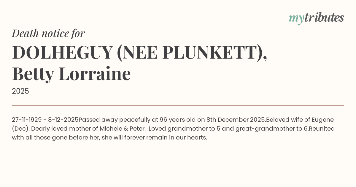 Passed away peacefully at 96 years old