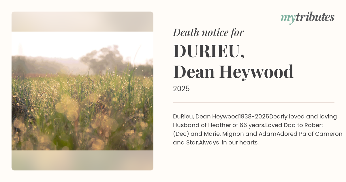 Loved Dad to Robert (Dec) and Marie, Mignon and Adam