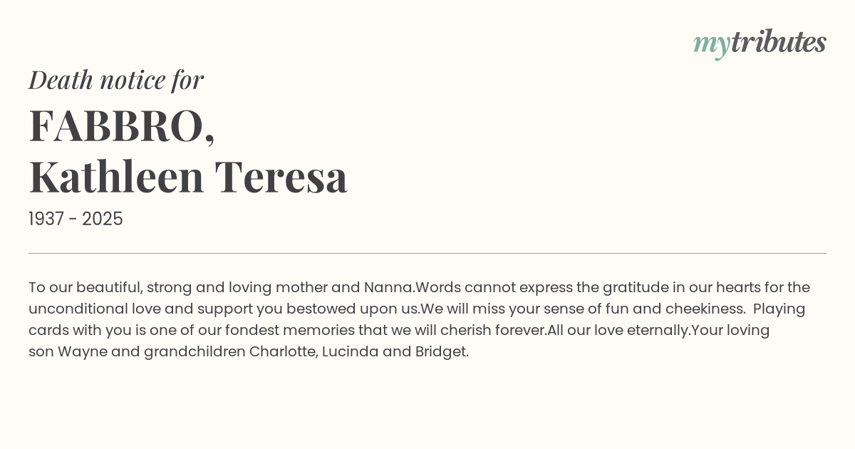 12°CTo our beautiful, strong and loving mother and Nanna.