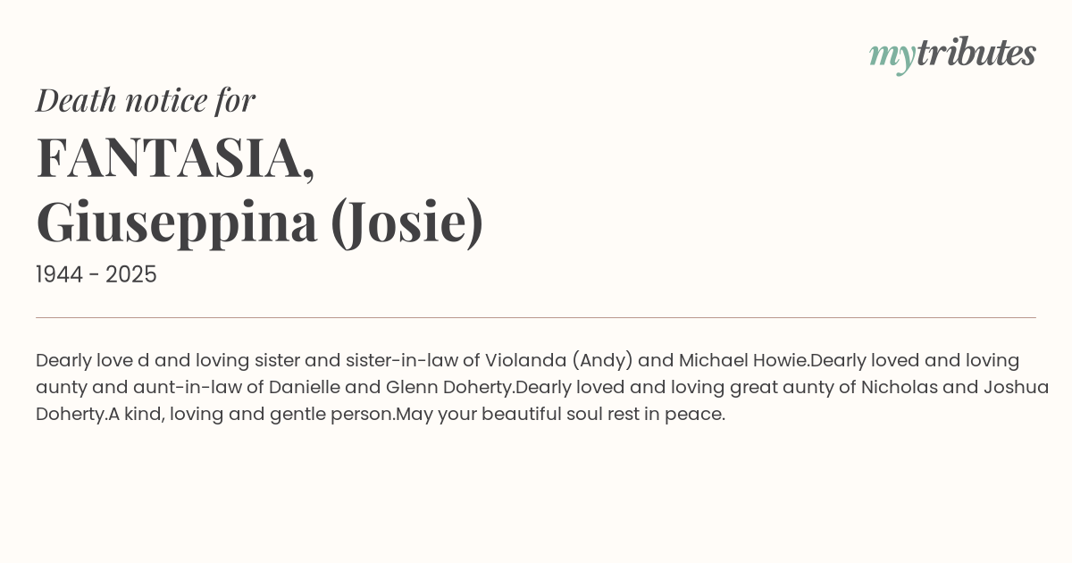 Dearly loved and loving great aunty of Nicholas and Joshua Doherty.