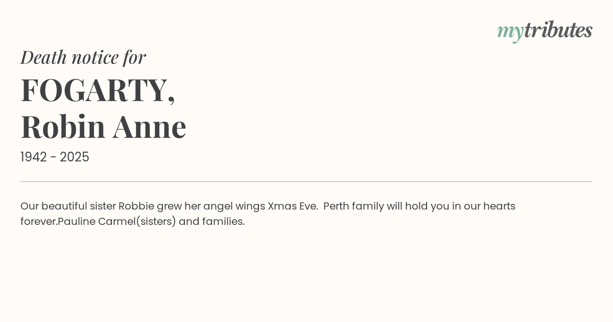 12°COur beautiful sister Robbie grew her angel wings Xmas Eve. Perth family will hold you in our hearts forever.