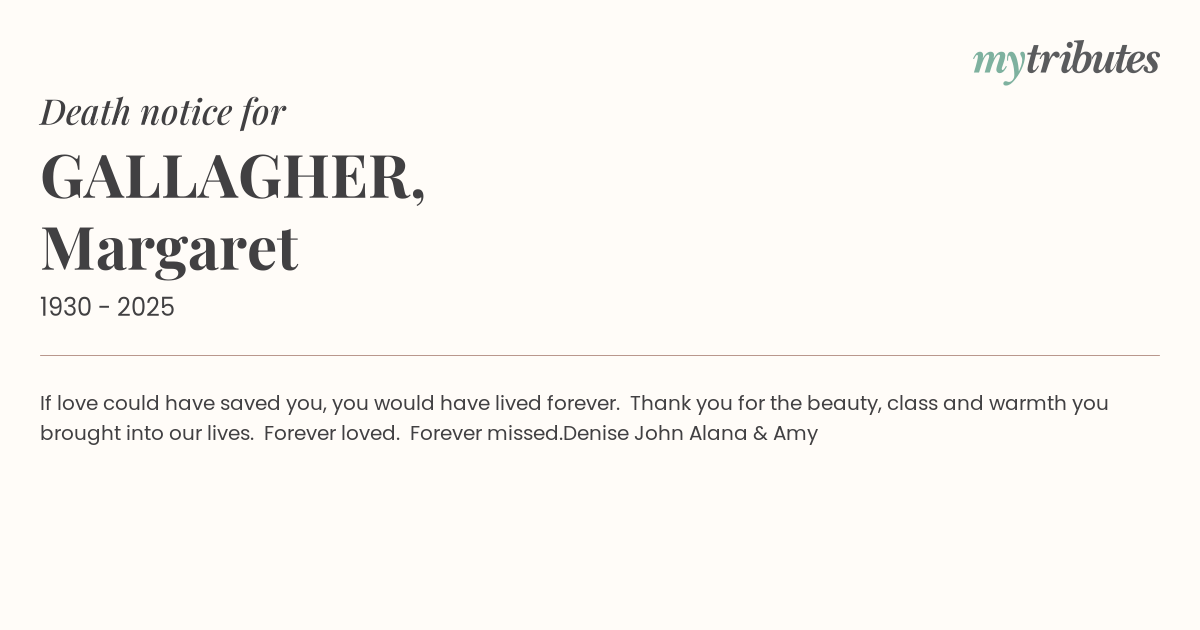 12°CIf love could have saved you, you would have lived forever. Thank you for the beauty, class and warmth you brought into our lives. Forever loved. Forever missed.