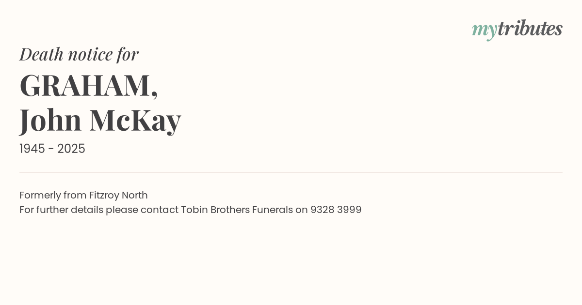 For further details please contact Tobin Brothers Funerals on