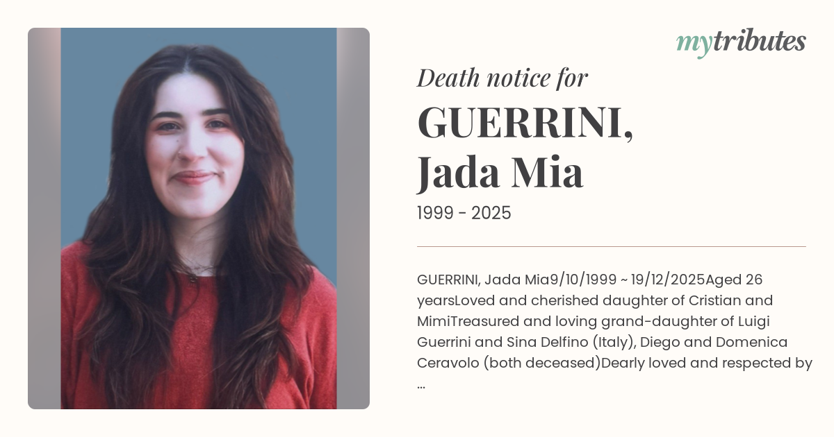 Treasured and loving grand-daughter of Luigi Guerrini and Sina Delfino (Italy), Diego and Domenica Ceravolo (both deceased)