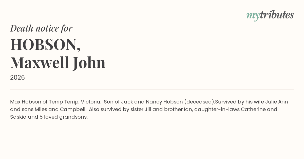 Son of Jack and Nancy Hobson (deceased).
