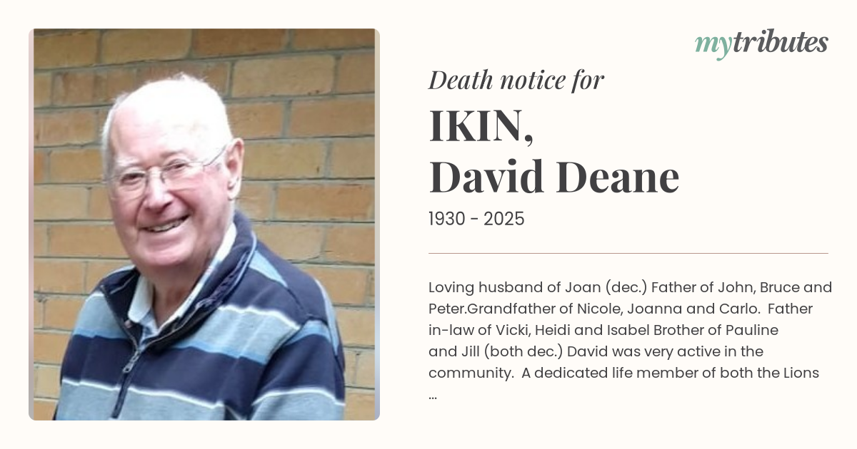 David was very active in the community. A dedicated life member of both the Lions Club and Melbourne Walking Club, and a generous supporter of worthy causes.