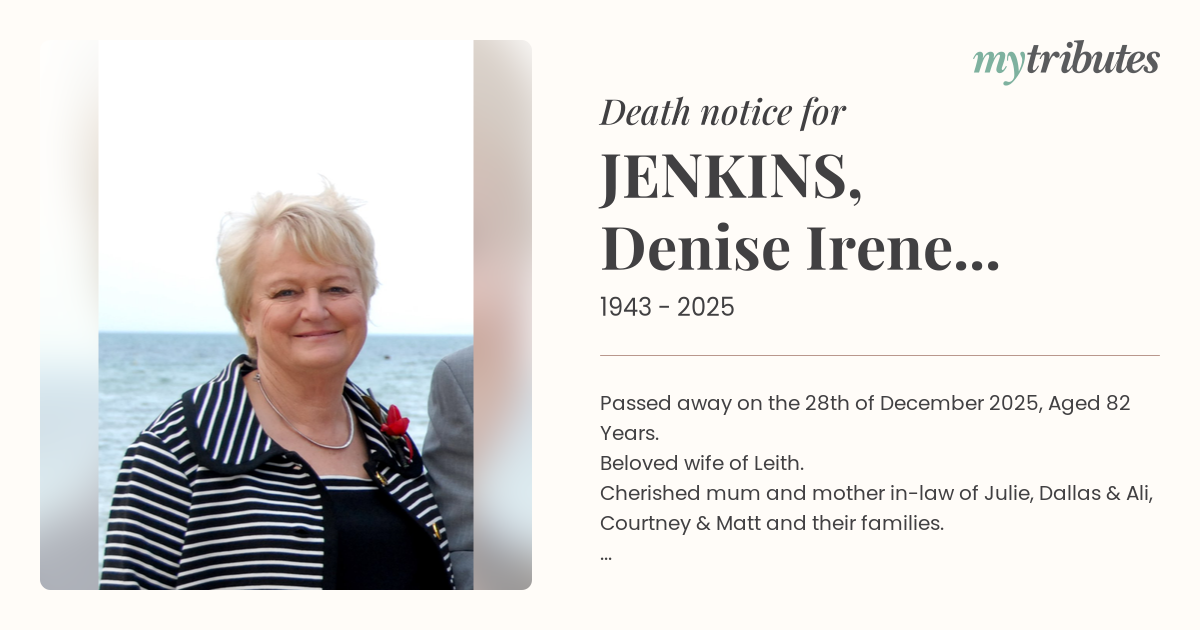 Cherished mum and mother in-law of Julie, Dallas & Ali, Courtney & Matt and their families.
