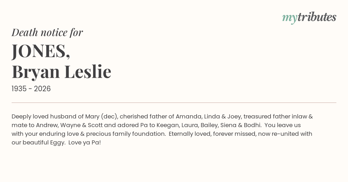 12°CDeeply loved husband of Mary (dec), cherished father of Amanda, Linda & Joey, treasured father inlaw & mate to Andrew, Wayne & Scott and adored Pa to Keegan, Laura, Bailey, Siena & Bodhi. You leave us with your enduring love & precious family foundation. Eternally loved, forever missed, now re-united with our beautiful Eggy.