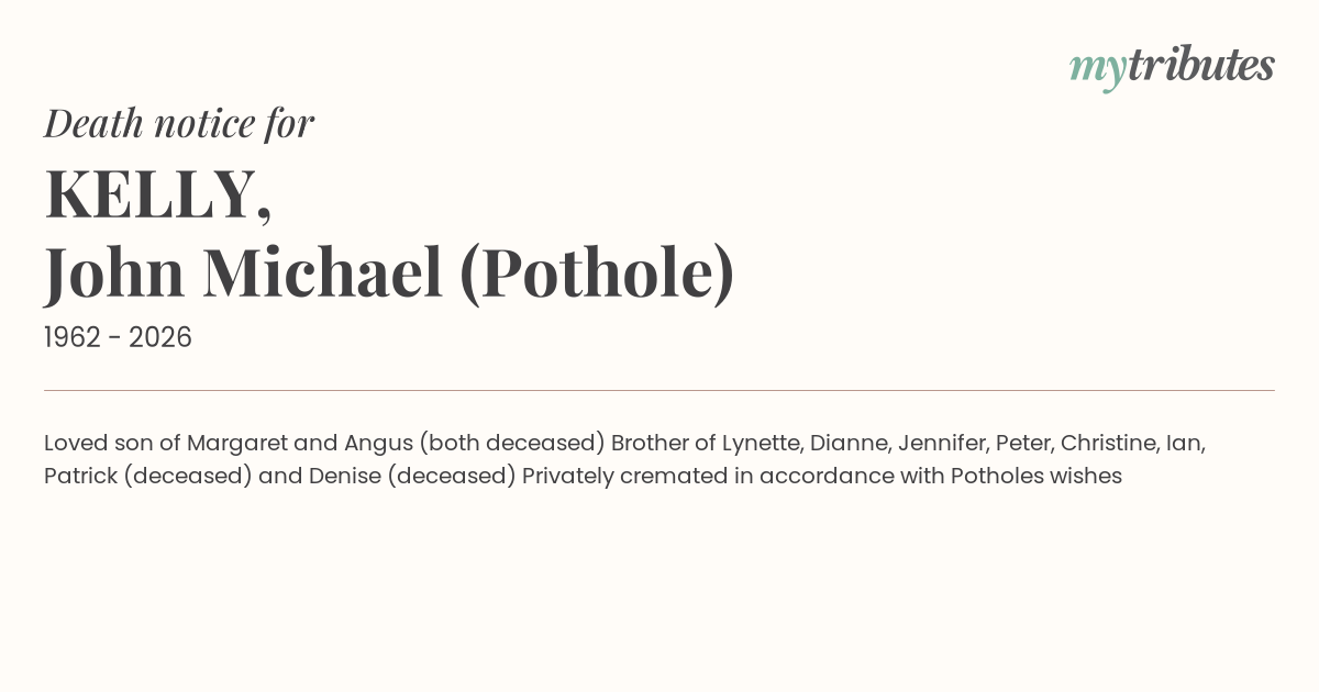 12°CLoved son of Margaret and Angus (both deceased)