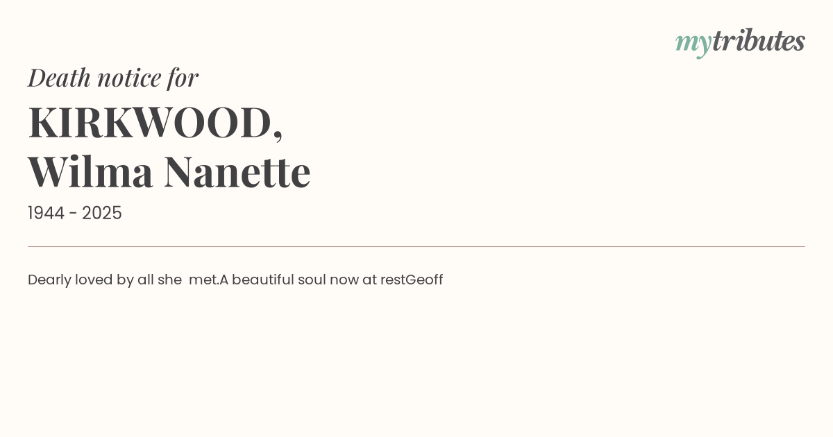 12°CDearly loved by all she met.