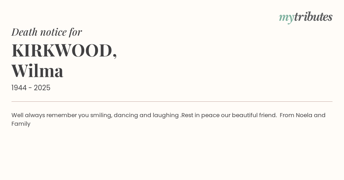 12°CWe’ll always remember you smiling, dancing and laughing .Rest in peace our beautiful friend. From Noela and Family