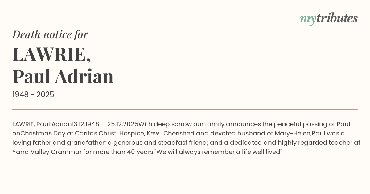Paul was a loving father and grandfather; a generous and steadfast friend; and a dedicated and highly regarded teacher at