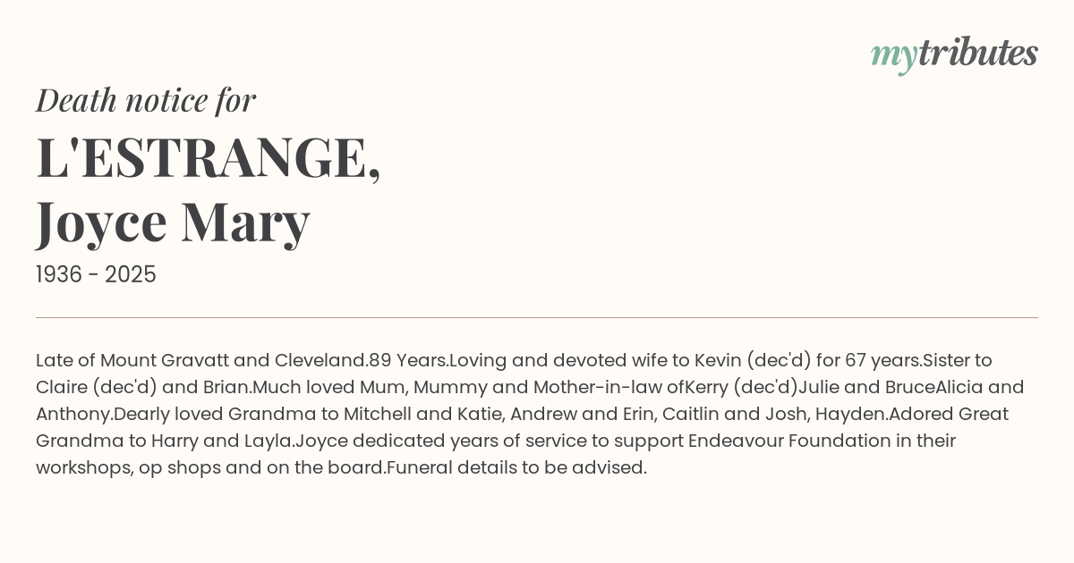 Funeral details to be advised.