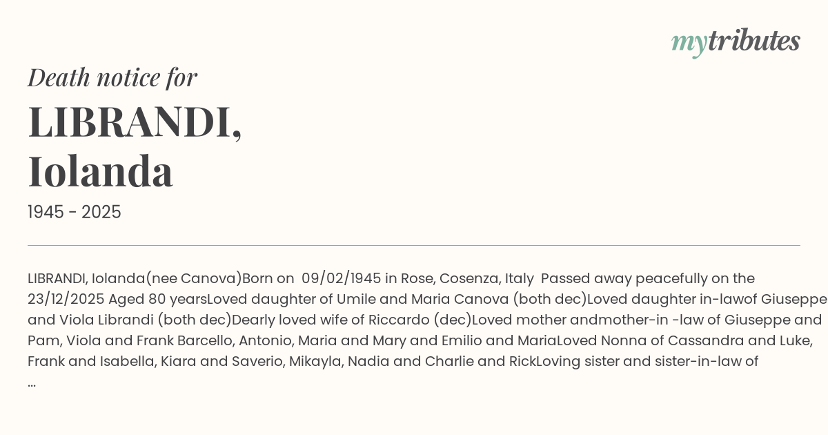 Loved Nonna of Cassandra and Luke, Frank and Isabella, Kiara and Saverio, Mikayla, Nadia and Charlie and Rick