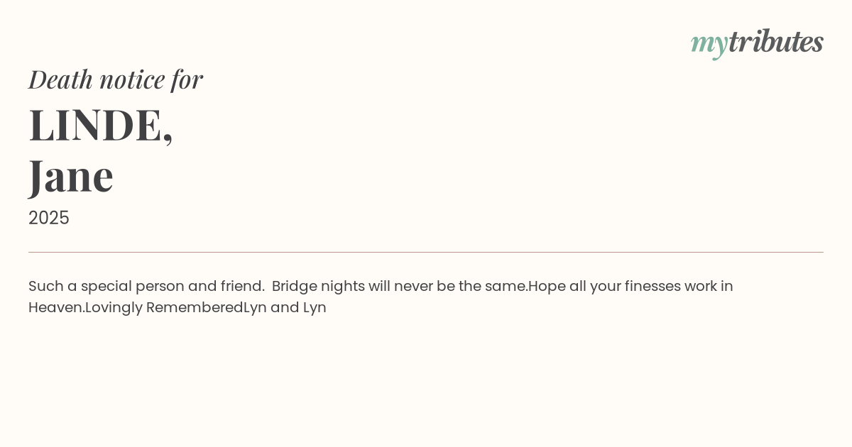 12°CSuch a special person and friend. Bridge nights will never be the same.