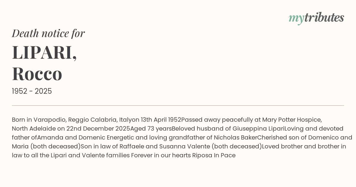 Beloved husband of Giuseppina Lipari