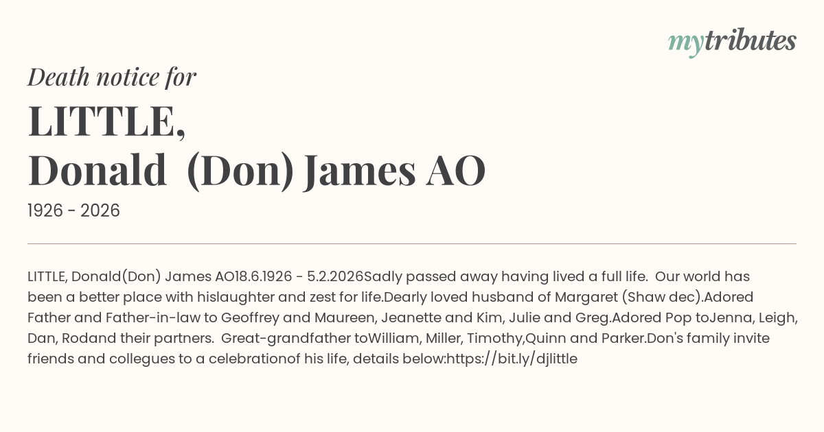Adored Father and Father-in-law to Geoffrey and Maureen, Jeanette and Kim, Julie and Greg.