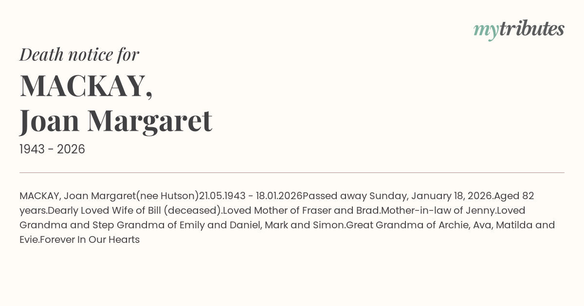 12°CMACKAY, Joan Margaret