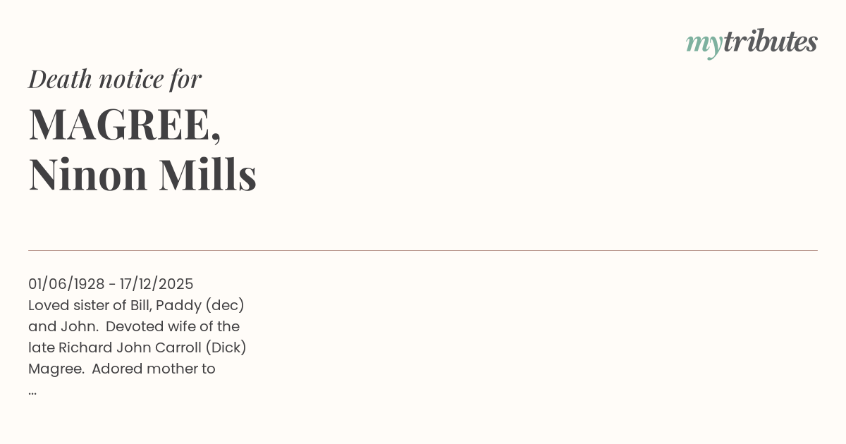 Magree. Adored mother to