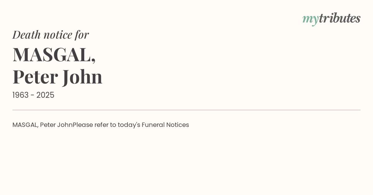 Please refer to today's Funeral Notices
