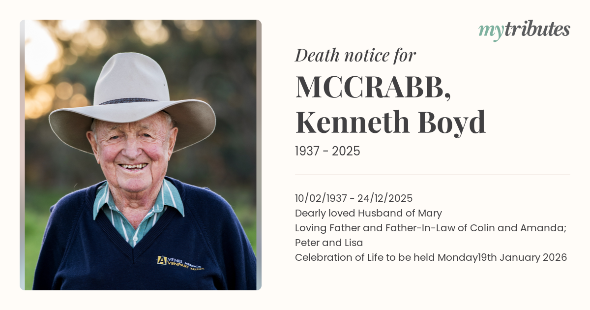 Celebration of Life to be held Monday19th January 2026