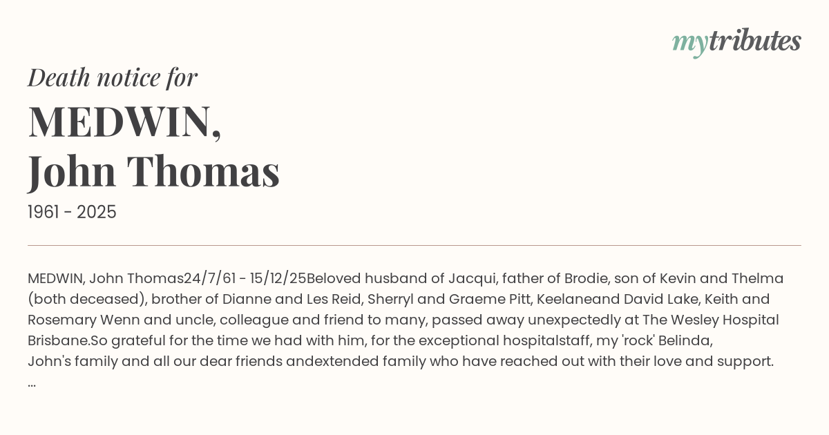 (both deceased), brother of Dianne and Les Reid, Sherryl and Graeme Pitt, Keelane