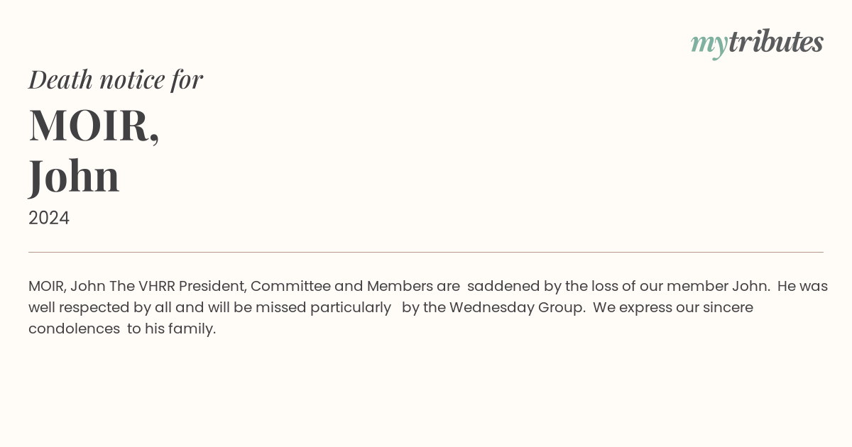 The VHRR President, Committee and Members are saddened by the loss