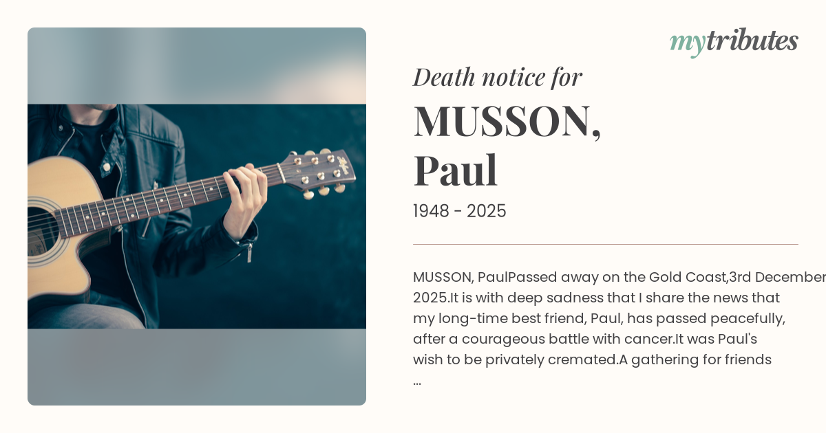 It is with deep sadness that I share the news that my long-time best friend, Paul, has passed peacefully, after a courageous battle with cancer.