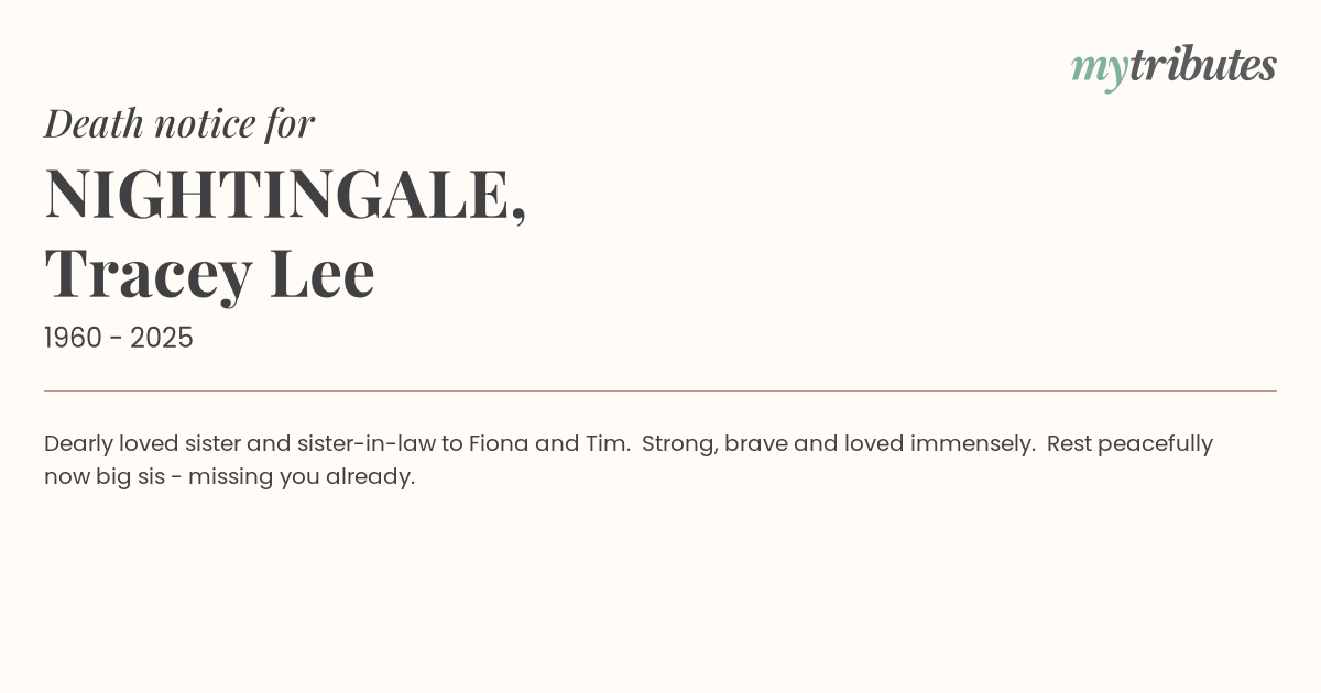 12°CDearly loved sister and sister-in-law to Fiona and Tim. Strong, brave and loved immensely. Rest peacefully now big sis’ - missing you already.