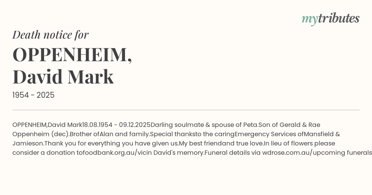 Funeral details via wdrose.com.au/