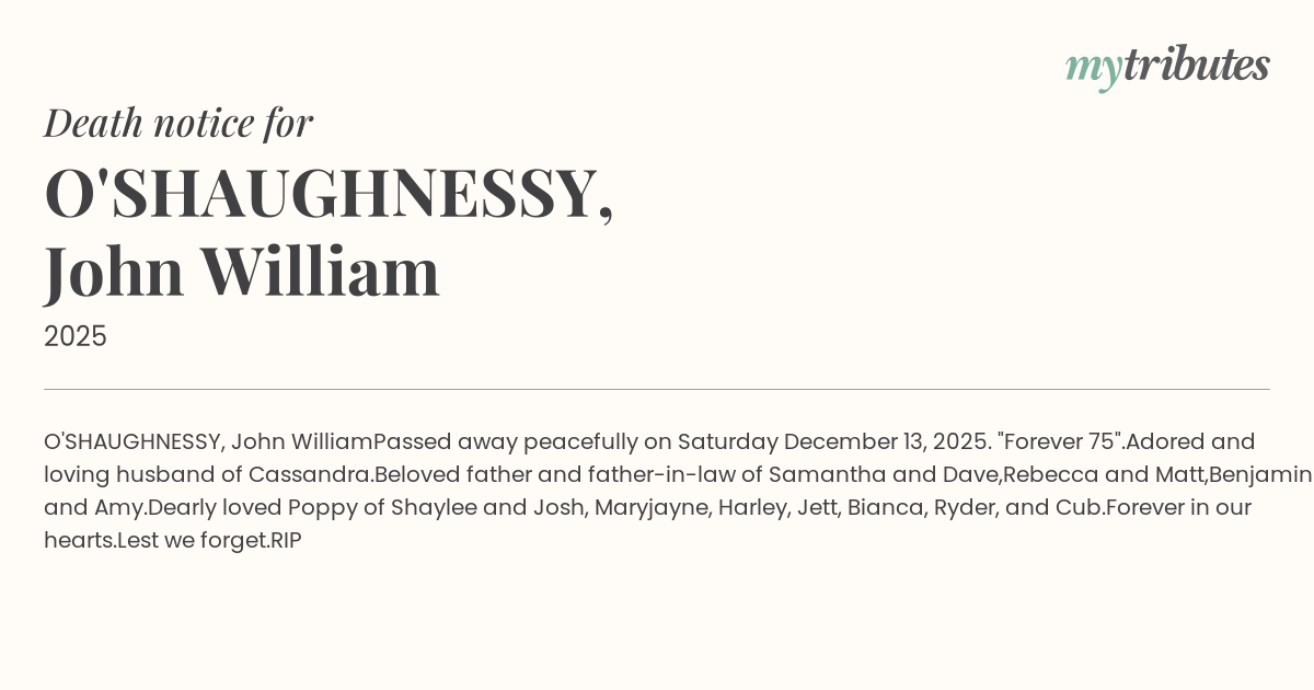 Passed away peacefully on Saturday December 13, 2025. "Forever 75".