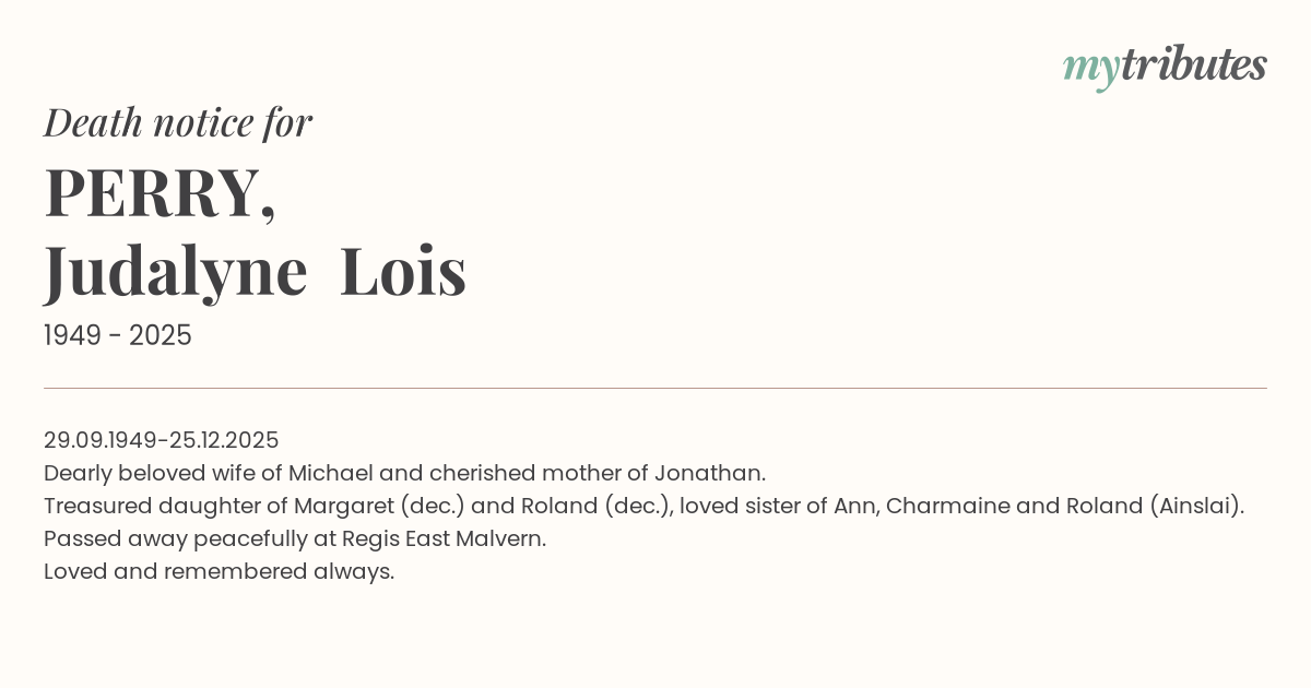 Treasured daughter of Margaret (dec.) and Roland (dec.), loved sister of Ann, Charmaine and Roland (Ainslai).