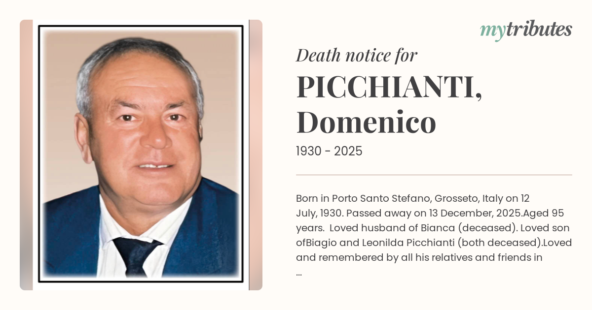 Loved husband of Bianca (deceased).